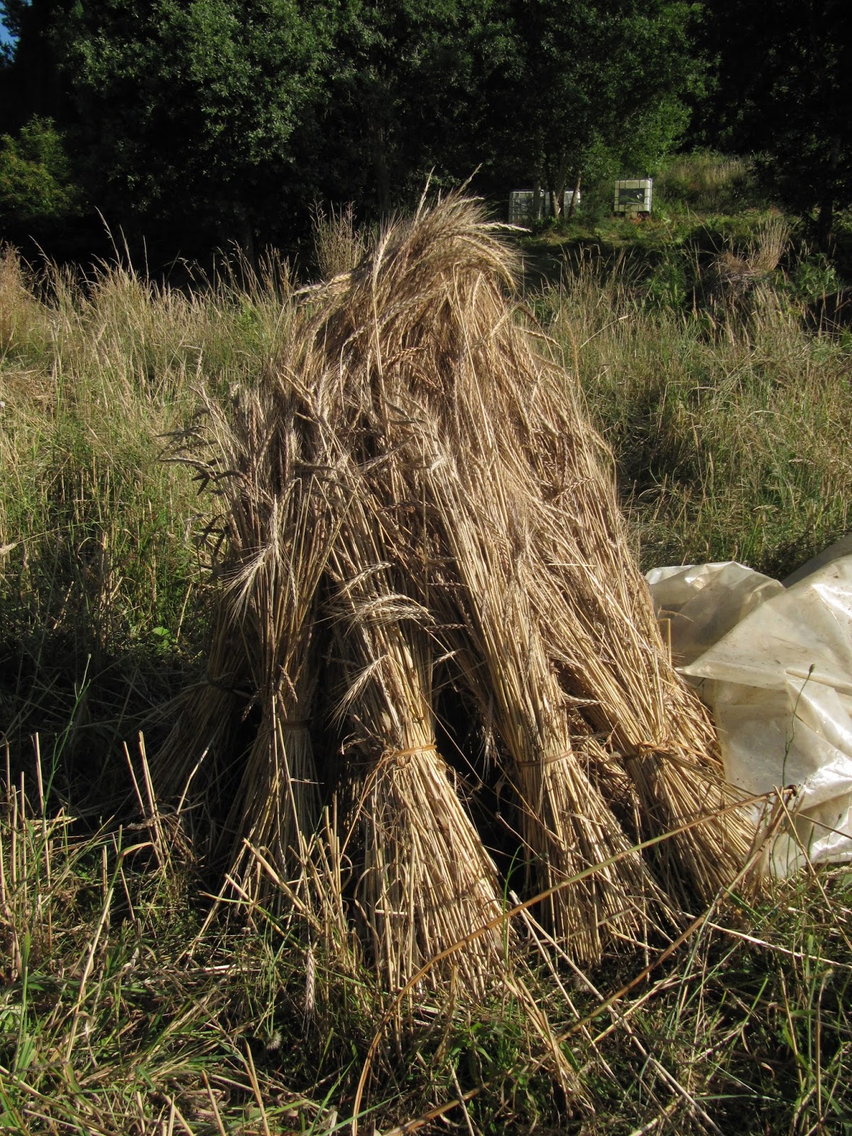 Despúes de segado y seleccionando para separar las yerbas que no eran espelta, hicimos fardos con ellos y los almacenamos, para continuar el proceso hasta transformarlo en harina.