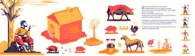 La prosa de Tolstói —decía Nabokov— late al ritmo de nuestro corazón. Elena Odriozola (Segundo Premio Nacional de Ilustración 2006) ha captado ese pulso narrativo y nos lleva con sus imágenes a la tierra que vio nacer a Pajom, permitiéndonos acompañarle en su viaje por la estepa rusa, marcado por el ritmo de su ambición. Las vacas serán testigo de ese afán.